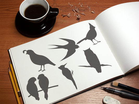 Fancy Bird Silhouettes Stencil 6-pack