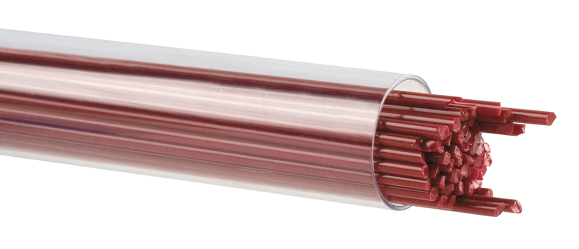 Stringers come in 0.5 mm (“Fine Line”), 1 mm, and 2 mm thicknesses and are approximately 17.75" (451 mm) long. They are packed in clear plastic tubes that are 18" (457 mm) long and 0.75" (19 mm) in diameter. Tubes are packaged by volume. A tube of .0.5 mm stringer contains approximately 350 pieces. A tube of 1 mm stringers contains approximately 123 pieces. A tube of 2 mm stringer contains approximately 50 pieces.