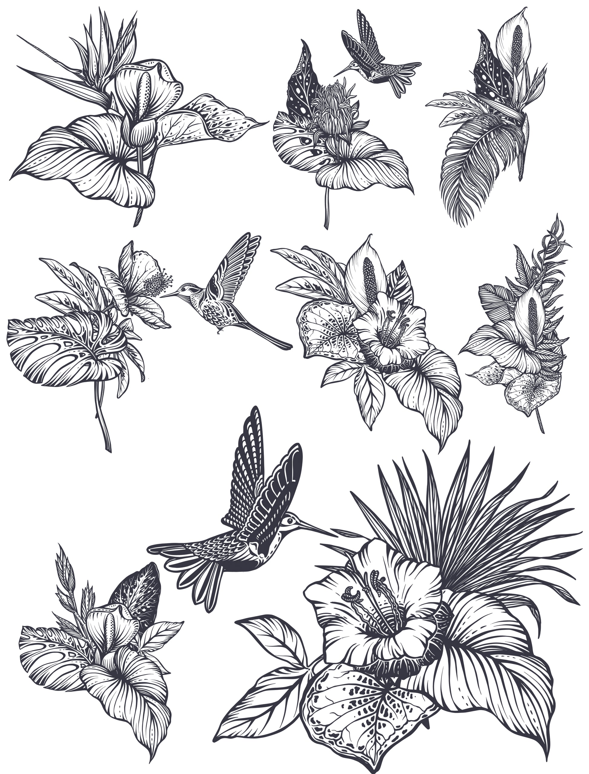 This sheet is a bit different from our other full color decals because ... there is no color! But the black on these decals is PURE BLACK ... no grays or brown! You can use these as they are, or fire them onto a sheet of clear, then use enamel paints to fill them in as you desire, then fire onto white for a truly georgous result! Decal sheets are 8.5"x11"