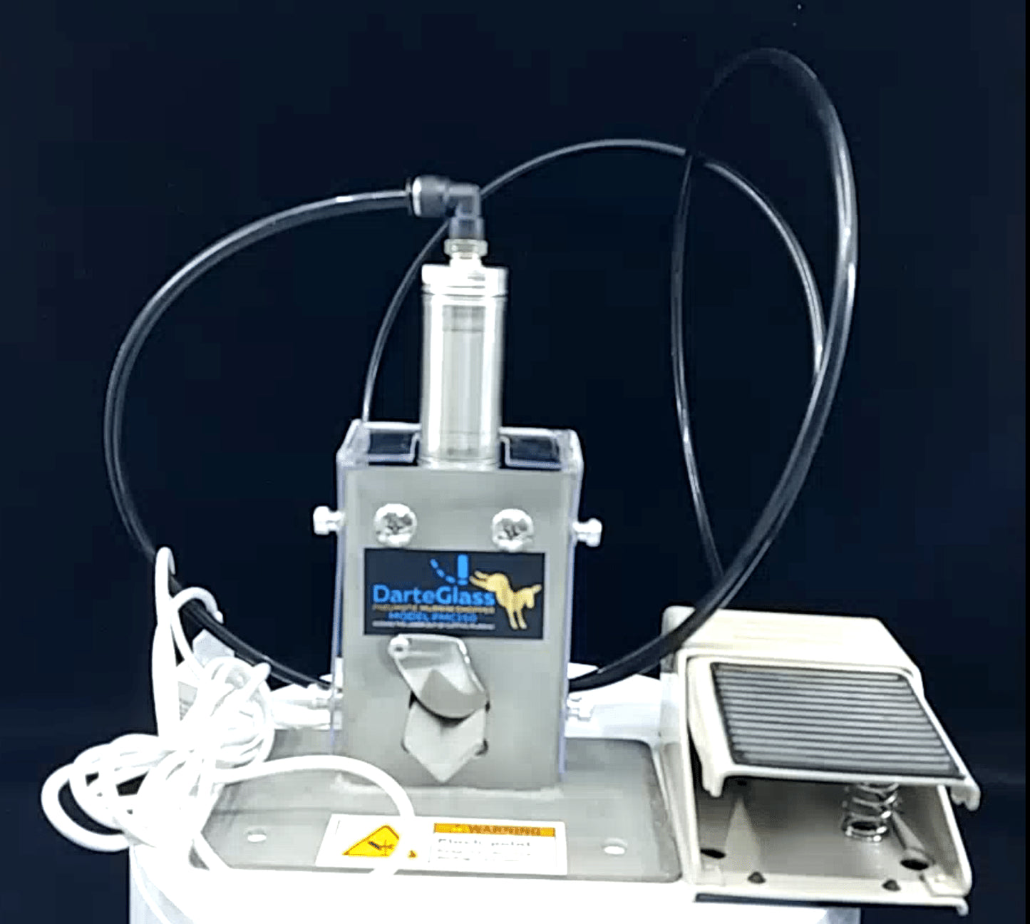 The latest in glass technology! Take the chore out of chopping murrini. Spend more time designing and less time chopping! Eliminate sore hands, sore shoulders and flying murrini, with the DarteGlass Pneumatic Murrini Chopper!
